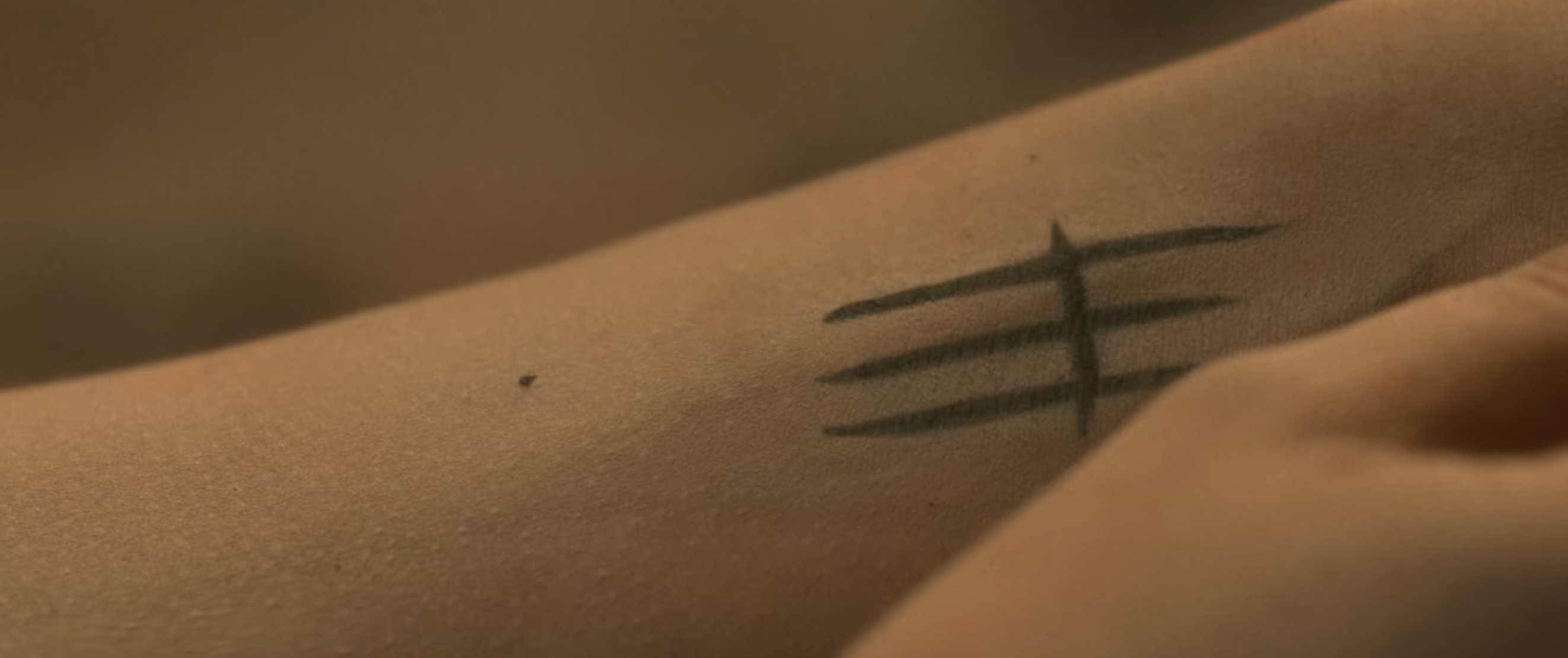 손목에는 이상한 표시가 그려져 있음