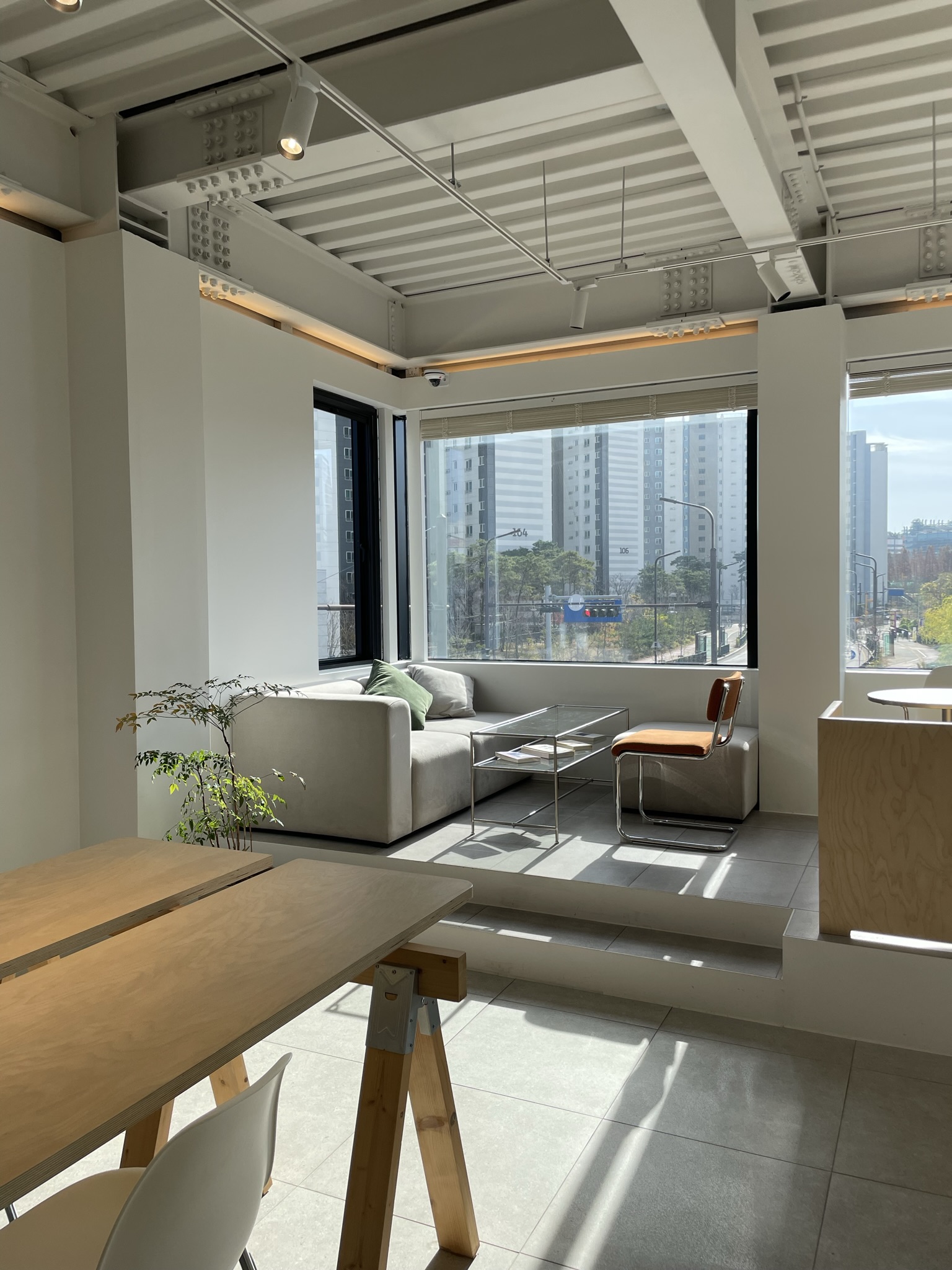 2층 통창의 뷰는 어떤 공업사지만
