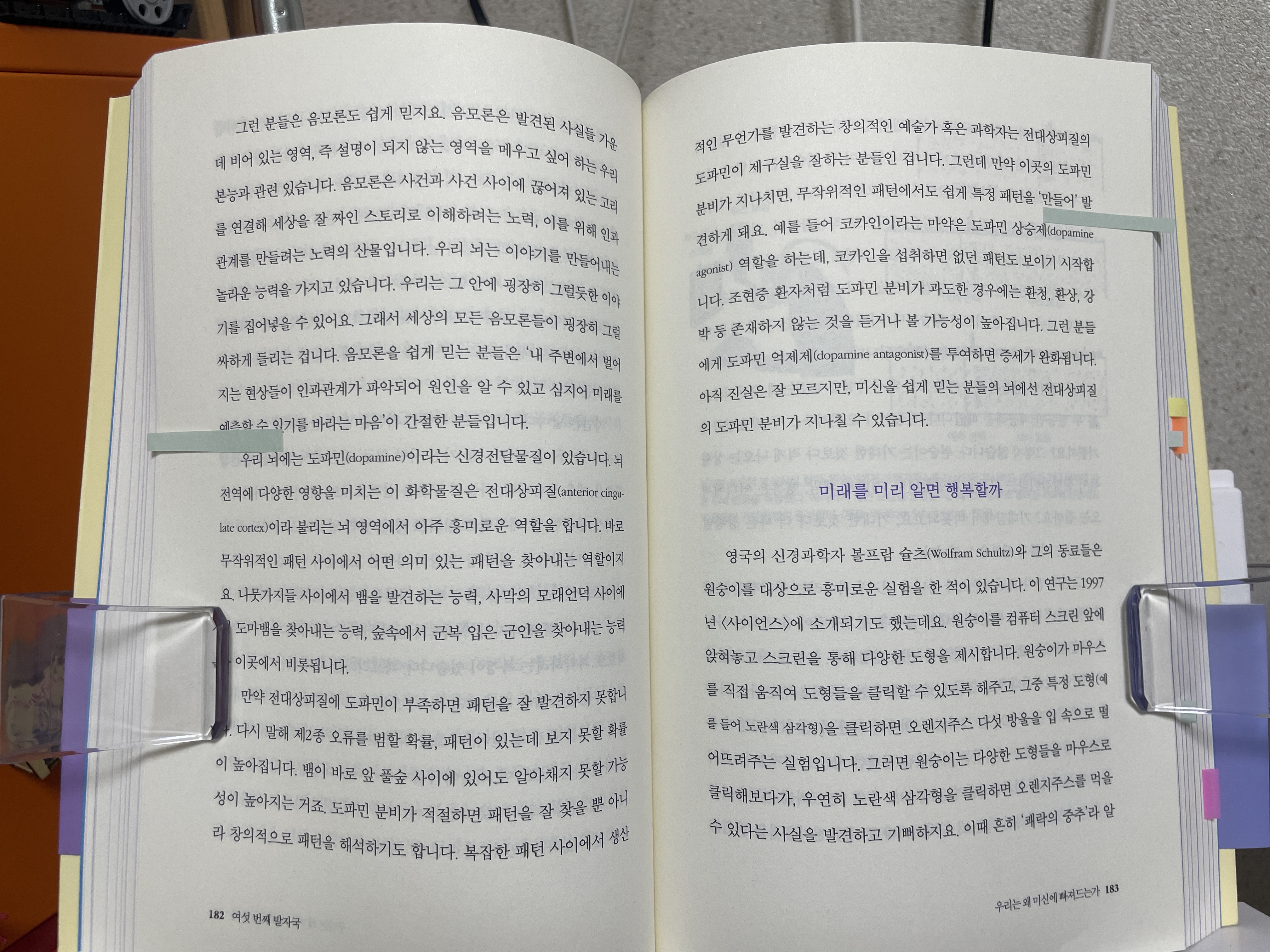 도파민이 부족하면 패턴을 잘 발견하지 못한다. 반대로 도파민 분비가 지나치면? 무작위적인 패턴에도 특정 패턴을 만들어 내기 때문에 환청, 환각 등에 시달릴 가능성이 높다. 그럼 혹시 귀신을 보는 사람들도...?