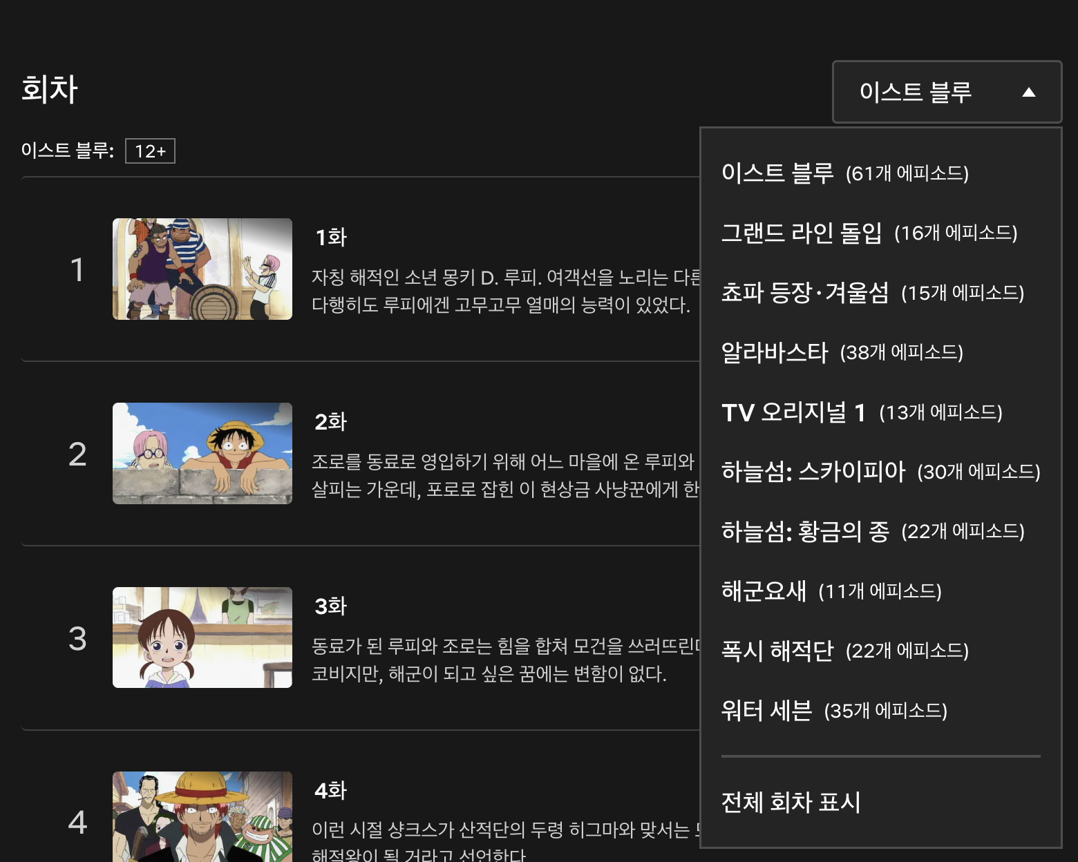 '흠.. 내년까지 기다릴 수 있을까?' 해서 넷플릭스에 올라온 원피스 원작 만화를 찾아봤습니다. 원작과 내용이 비슷한 거 같아서 만화로 뒷 내용을 보려고요.