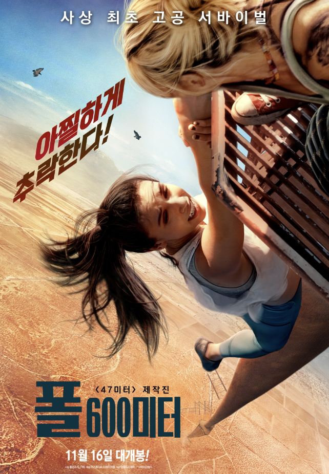 원제목은 FALL이나 우리나라에 들어오면서 뒤에 600미터가 붙은 모양입니다. 아무래도 FALL 만으로는 어떤 영화인지 잘 감이 오지 않아 600미터를 덧붙인 모양입니다. 잘 붙인 것 같아요. 600미터가 확 공포감을 전달해 주거든요.