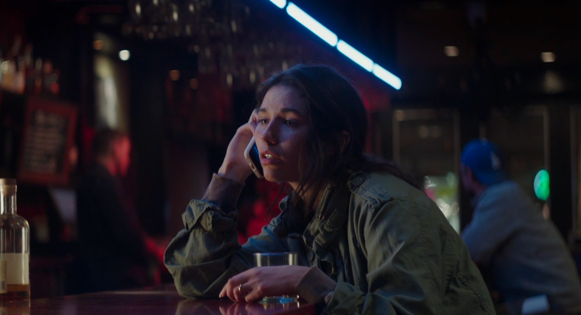 아빠에게 구조 요청 문자를 작성한 스마트폰을 헌터의 터진 배속에 넣고 스마트폰이 망가지지 않기를 바라며 헌터의 시체를 바닥에 떨어트리는 베키...