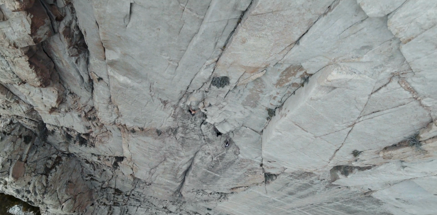 매달린 채 드론으로 영상 찍음.