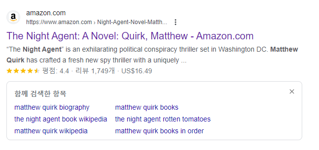 참고로 이 시리즈는 매슈 쿼크의 소설 <The night agent>가 원작이라고 해요.