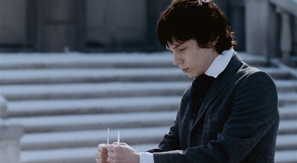 뤼번은 앞이 보이지 않기 때문에 마리가 어떻게 생겼는지는 상상에 의존할 수밖에 없습니다. 마리의 책 읽어주는 목소리가 아름답듯이 얼굴 또한 아름다운 사람일 거라고 상상을 하죠. 자신이 좋아하는 사람이 어떻게 생겼나 궁금했던 뤼번은 마리에게 가까이 다가가 감각을 총동원합니다.