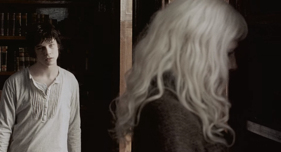 하지만 이때까지 뤼번은 그 여자가 마리인지 알아채지 못합니다. 당연하죠. 뤼번은 마리가 빨간 머리에 초록색 눈을 가진 여자인 줄 알고 있거든요. 안데르센 책을 찾아주려는 마리를 따라가는 뤼번, 책을 건네주는 마리의 흉터 투성이 얼굴을 보고 흠칫 놀랍니다.