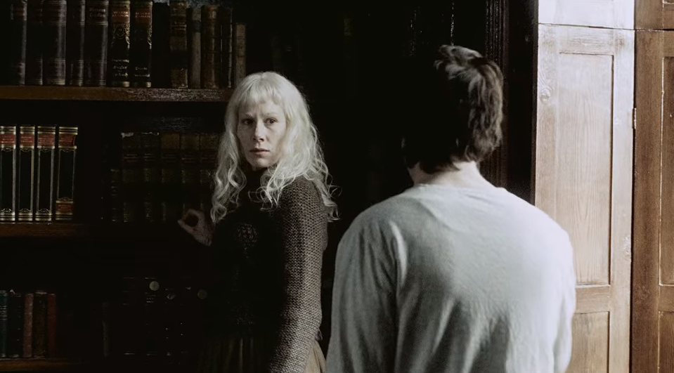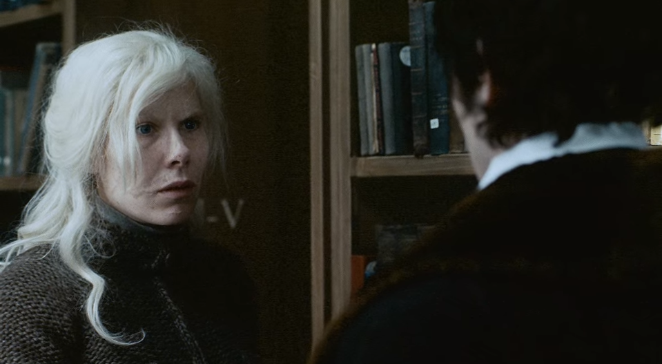 하지만 이때까지 뤼번은 그 여자가 마리인지 알아채지 못합니다. 당연하죠. 뤼번은 마리가 빨간 머리에 초록색 눈을 가진 여자인 줄 알고 있거든요. 안데르센 책을 찾아주려는 마리를 따라가는 뤼번, 책을 건네주는 마리의 흉터 투성이 얼굴을 보고 흠칫 놀랍니다.