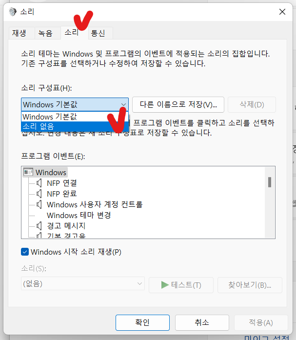 컴퓨터 노트북 효과음 끄는 방법(윈도우 운영체제)