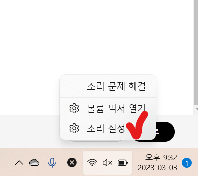 2. '소리 설정'을 클릭한다.