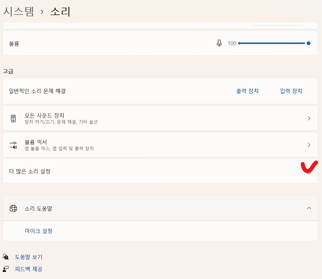3. '더 많은 소리 설정'을 클릭한다.