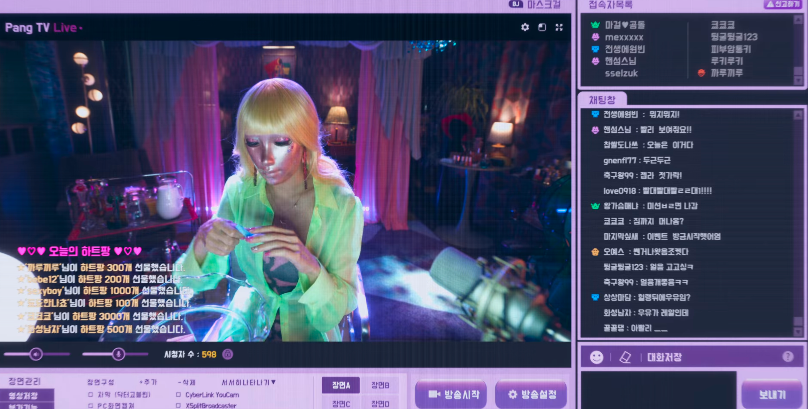 춤도 잘 추고 노래도 잘했던 모미는 자극적인 BJ바닥에서 살아남기 위해서 19금의 선을 아슬아슬하게 지키는 콘텐츠들을 제작합니다. 그리고 사람들의 반응은 폭발적이었죠. 이때부터는 사람들이 원하는 방향대로 콘텐츠를 제작할 수밖에 없습니다. 모미는 자신의 몸매를 활용한 콘텐츠들로 큰 액수의'하트 팡'을 받으며 자신의 부캐 마스크걸을 상위 랭킹으로 올려놓습니다.