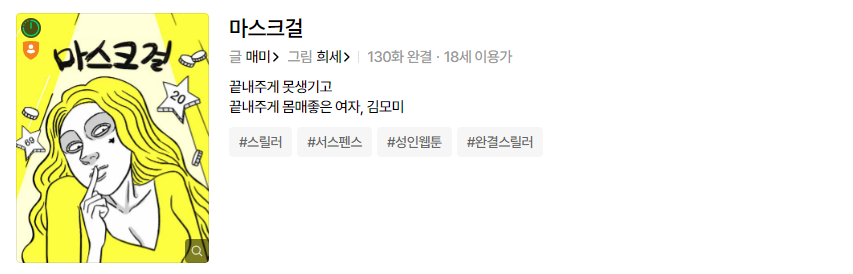 오랜만에 넷플릭스에서 재밌게 본 드라마가 생겼습니다. 동명의 웹툰을 드라마화 한 넷플릭스 오리지널 시리즈 '마스크걸'인데요. 상큼해 보이는 포스터에 전혀 상큼하지 않은 이야기를 다룬 시리즈입니다.