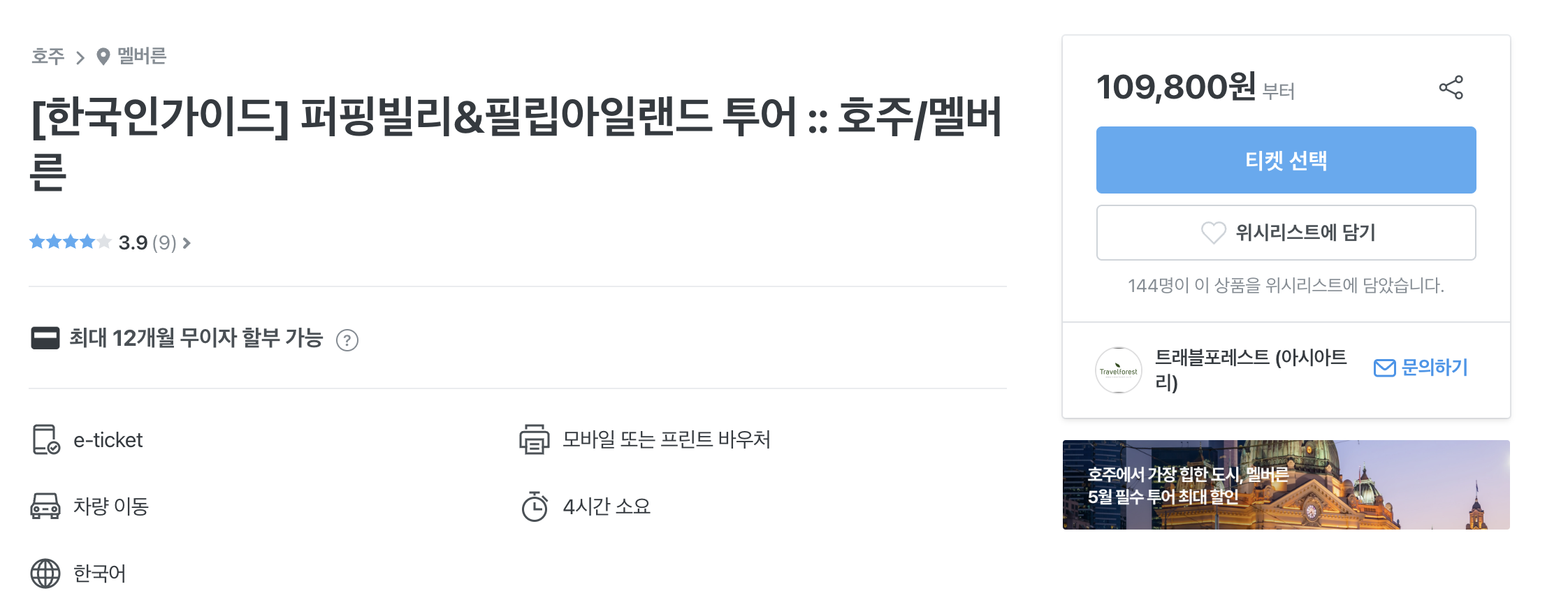 퍼핑빌리&필립 아일랜드 투어를 신청했다.
